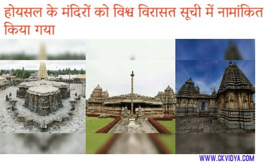 प्रमुख तथ्य-:15 अप्रैल 2014 से ‘होयसल मंदिरों के पवित्र पहनावा’ को यूनेस्को की अस्थायी सूची में रखा गया हैं,और इस देश की समृद्ध ऐतिहासिक और सांस्कृतिक विरासत की गवाही देते हैं।